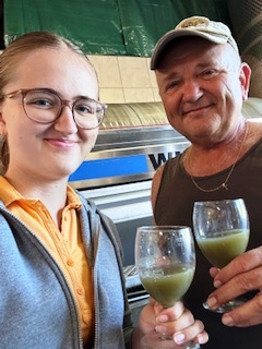 .. wurde heute früh mit 16,5° KMW in bester Qualität geerntet! Winzer Sepp und Jungwinzerin Katharina bei der ersten Verkostung....